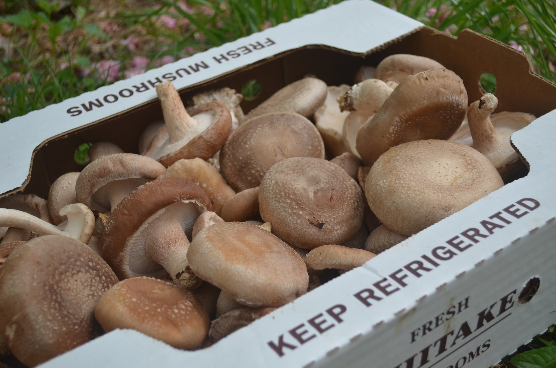 Fresh Shiitake Mushrooms picked and packed at our farm in Virginia.